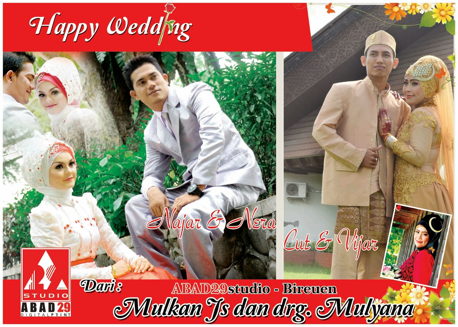Kami segenap karyawan dan Kleuarga Besar Abad29Studio Mengucapkan selama hidup baru dan menjadi kularga sakinah, mawaddah, warahmah buat Najar dan Nera serta Cut dan Vijar. dan insya Allah Dikaruniai Keturunan yang sholeh serta bermanfaat bagi negara dan agama.